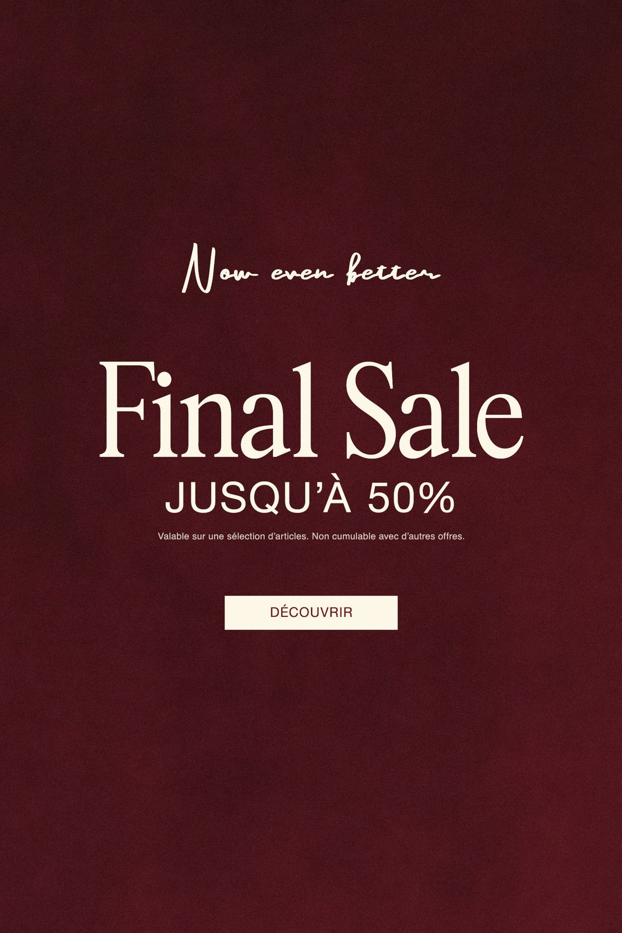 Inscrivez-vous maintenant et profitez de 20 % de réduction sur votre commande – offre limitée.