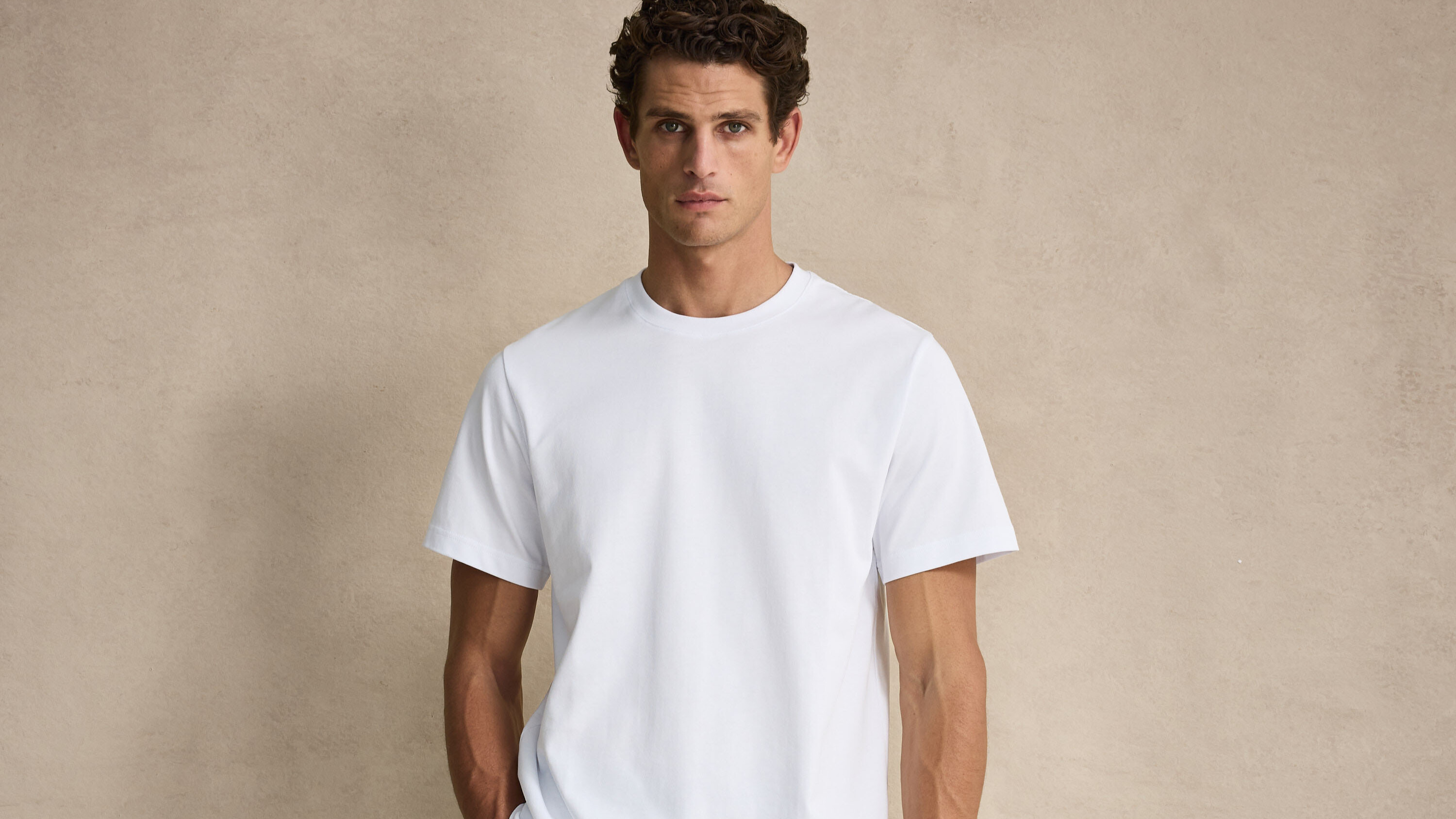 T-skjorten er et allsidig plagg som smelter sammen med en rekke forskjellige stiler og kombinasjoner. Den kan bæres under en åpen skjorte, under en cardigan eller til og med under en blazer, eller den kan bæres alene på en solrik sommerdag. T-skjorten har en relativt kort historie som strekker seg tilbake til begynnelsen av 1900-tallet. Fra å ha vært en del av militæruniformen under verdenskrigene, har den nå blitt en av de mest uunnværlige plaggene i en manns garderobe. Komforten er av ytterste vikt når det gjelder basisplagg; våre t-skjorter forener stil og komfort og er tilgjengelige i klassiske bomullsmodeller eller i en mer eksklusiv blanding av bomull og silke.