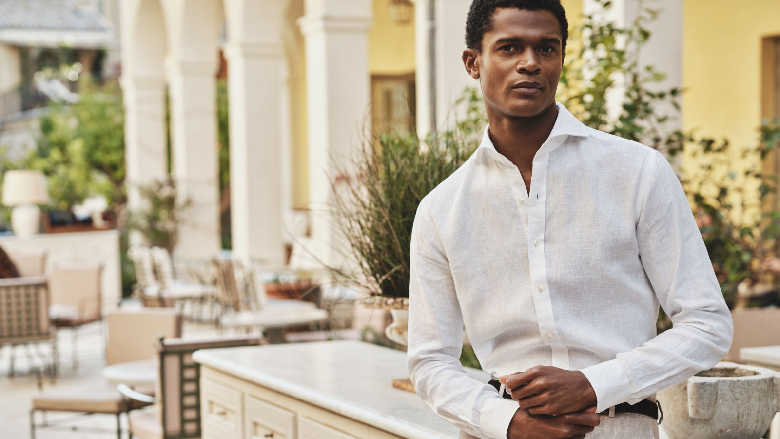 En vit linneskjorta ska kännas luftig utan att tappa formen. Om du vill ha en mer uppklädd siluett: välj en passform som sitter snyggt över axlarna och faller rent över bröstet. För en mer ledig sommarstil: välj en något rymligare känsla som gör skjortan extra sval och avslappnad.
